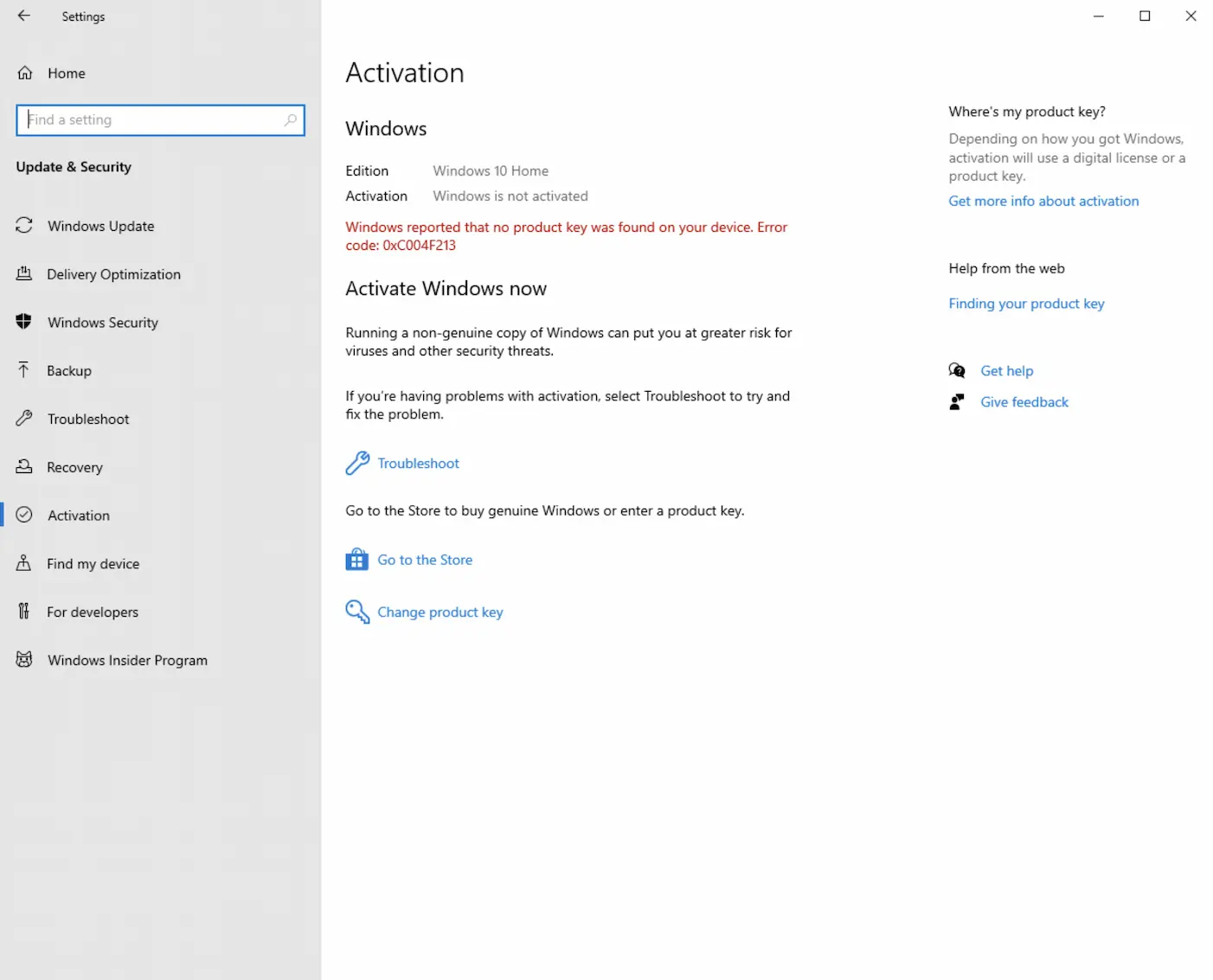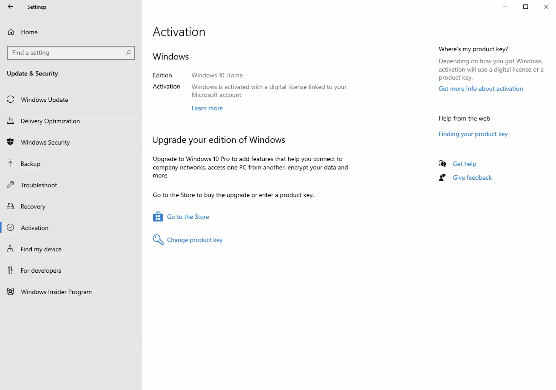 I’ve created a fresh install of Windows 10 to show this process. First off, here’s the activation page to confirm that my license is not yet activated.