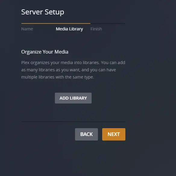 Once PMS is installed, click Launch. It will open up a browser window. Sign in to your account and begin configuration. First, name your server, then make sure you check “Allow me to access my media outside my home”. Click Next. It’ll think for a bit then bring you to this screen.