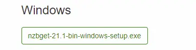 There are a few NZB downloaders, with the main two being NZBGet and SabNZB. For the purpose of this guide, we will be using NZBGet, but setup is fairly similar between the two of them if you would want to switch to SabNZB in the future. Follow the provided link for NZBGet, and download the lastest stable release for windows, which at the time of writing is 21.1.