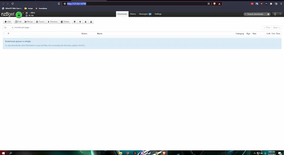 NZBGet’s web UI should now open in your browser, but if it doesn’t navigate to 127.0.0.1:6789 and you should be greeted with this screen. If it asks for a login, the default username is nzbget and the password is tegbzn6789.
